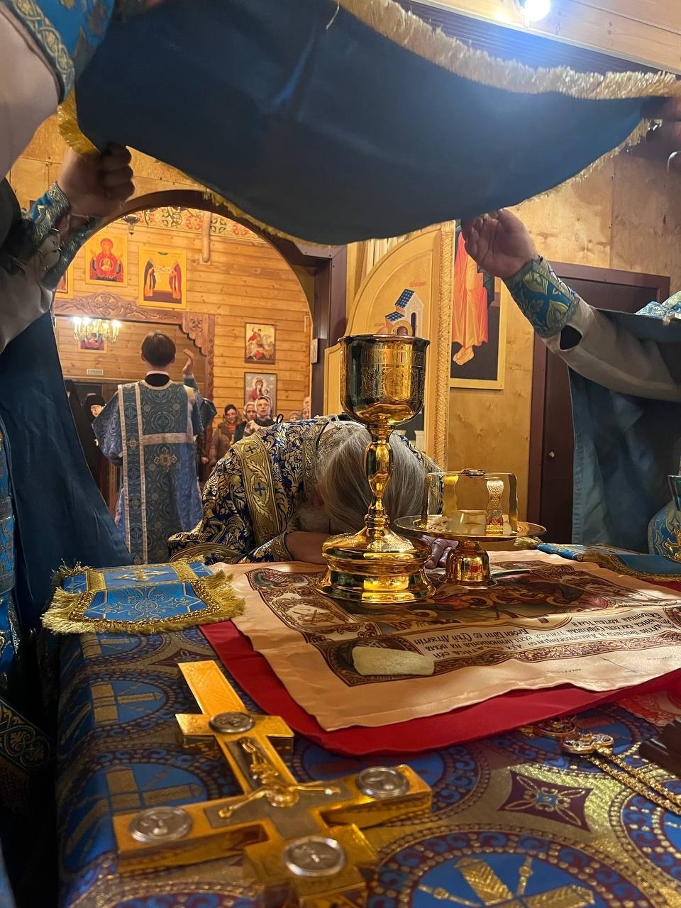 Архипастырь совершил Божественную литургию, за которой после сугубой ектении была вознесена молитва о мире. Проповедь перед причастием произнес игумен Киприан (Грищенко). По завершении службы в сопровождении колокольного звона на двух колокольнях духовенство и прихожане прошли крестным ходом вокруг храма.